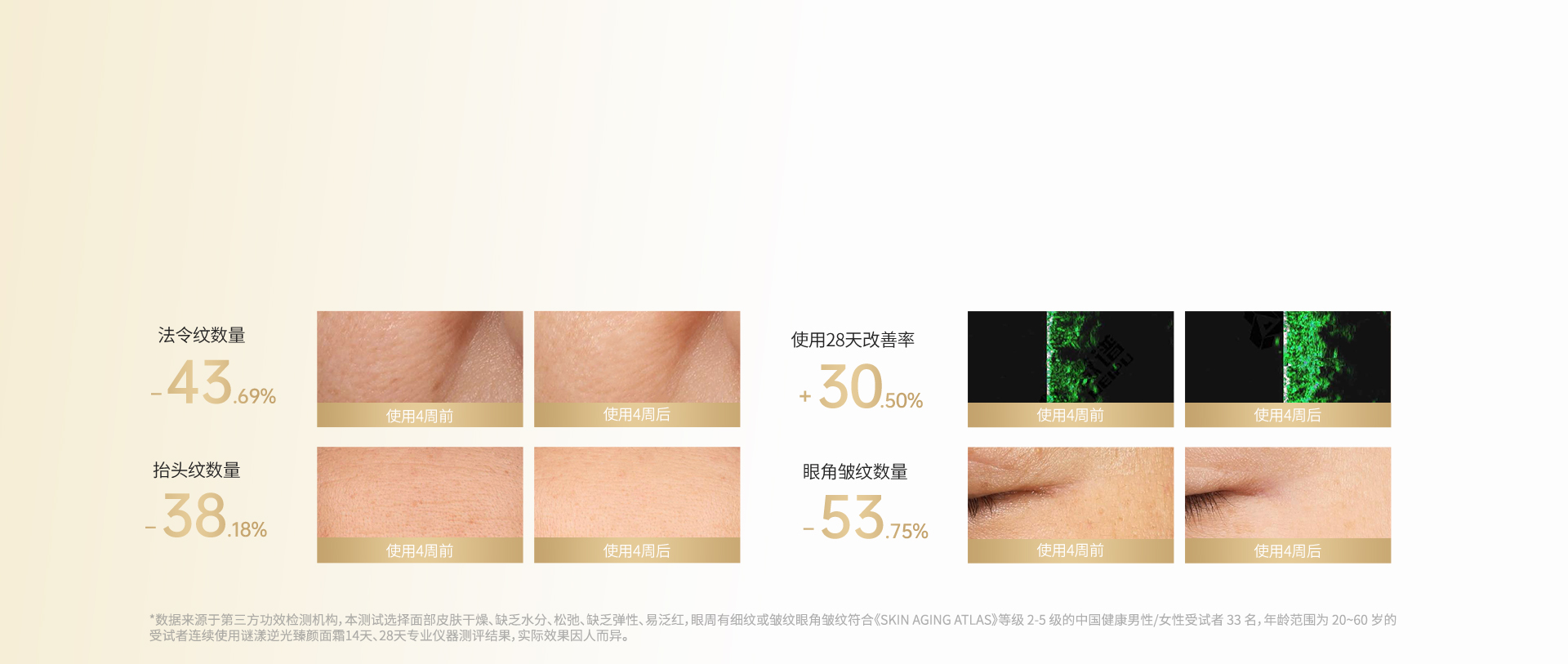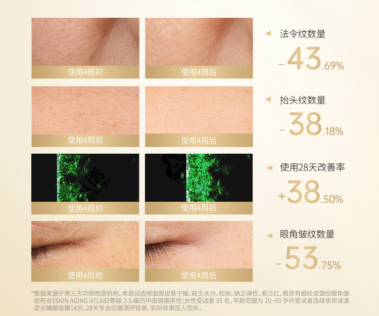皮肤胶原密度、淡化眼纹、抚平皱纹
